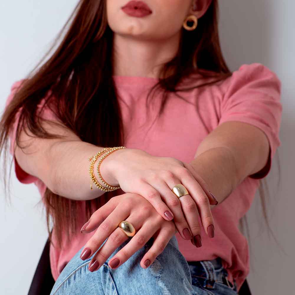 ANEL REGULÁVEL DOURADO FOLHEADO A OURO 18K