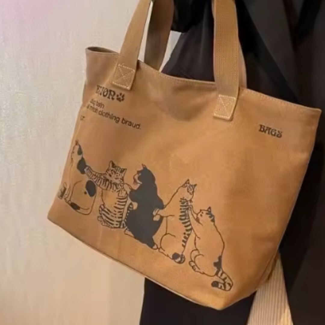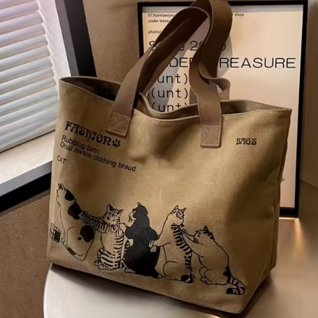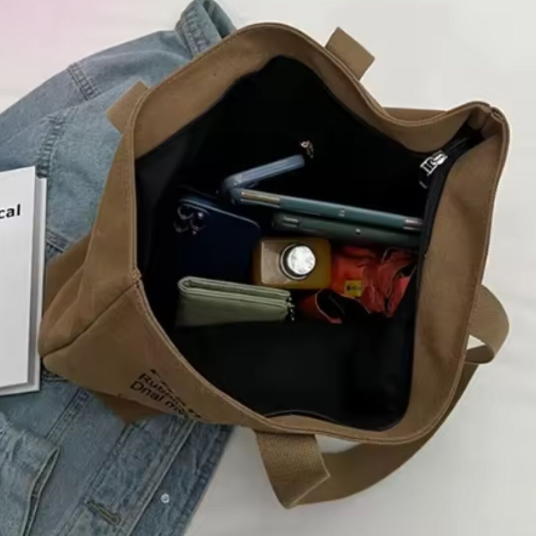 Bolsa de ombro feminina de lona com alça superior de grande capacidade para compras no escritório e escola