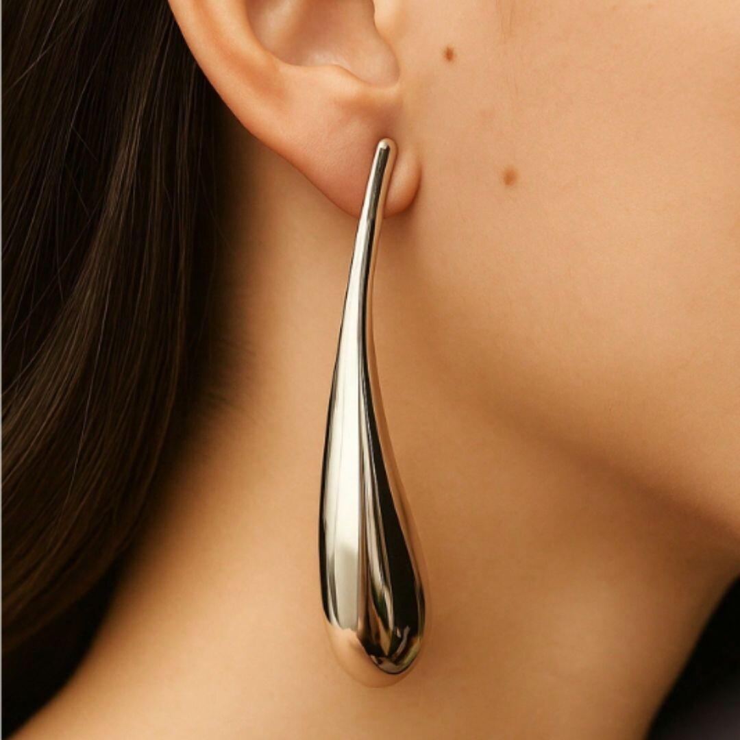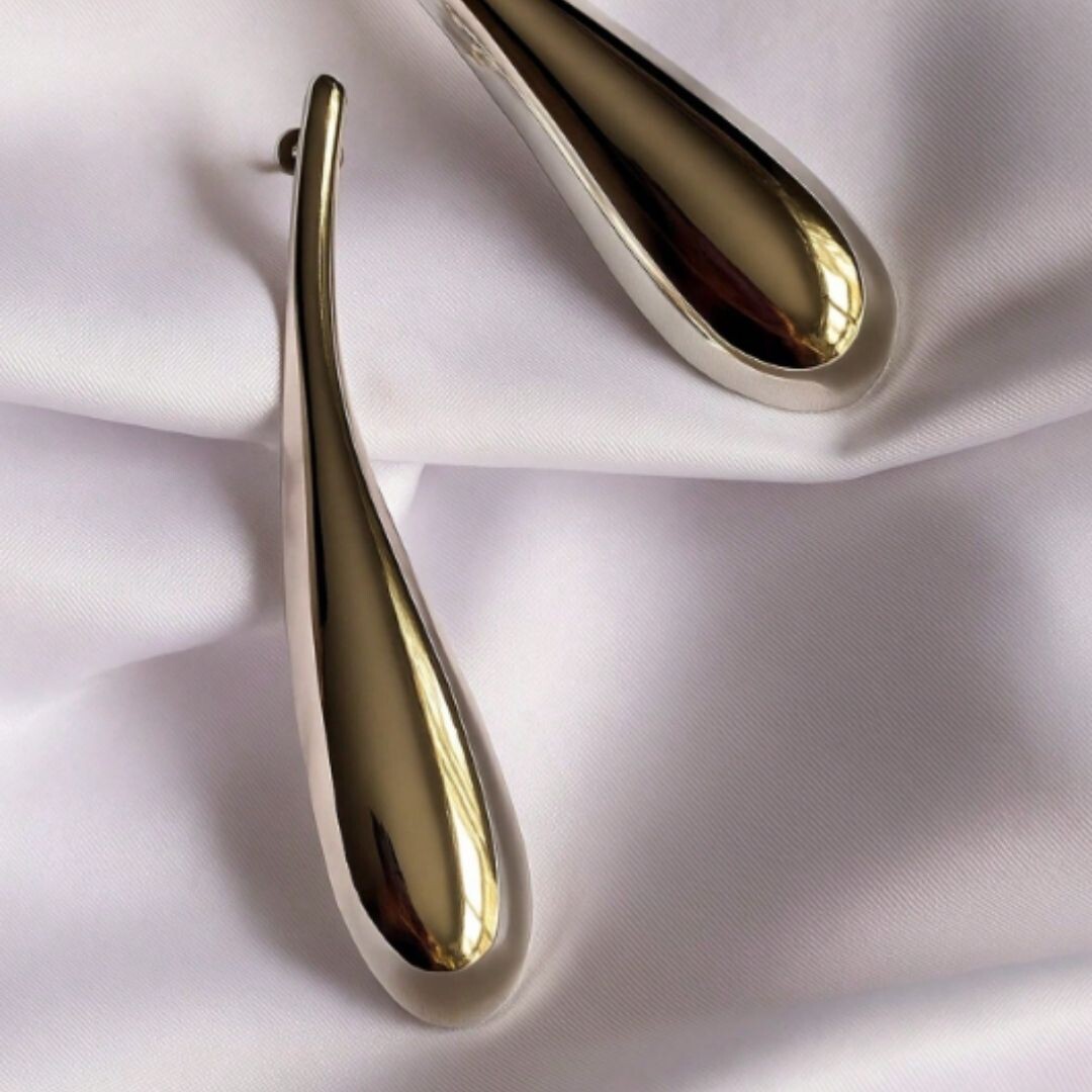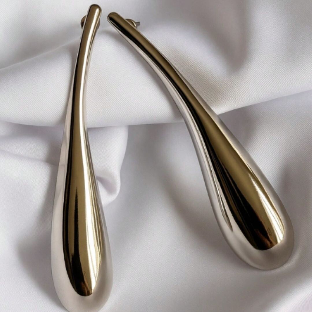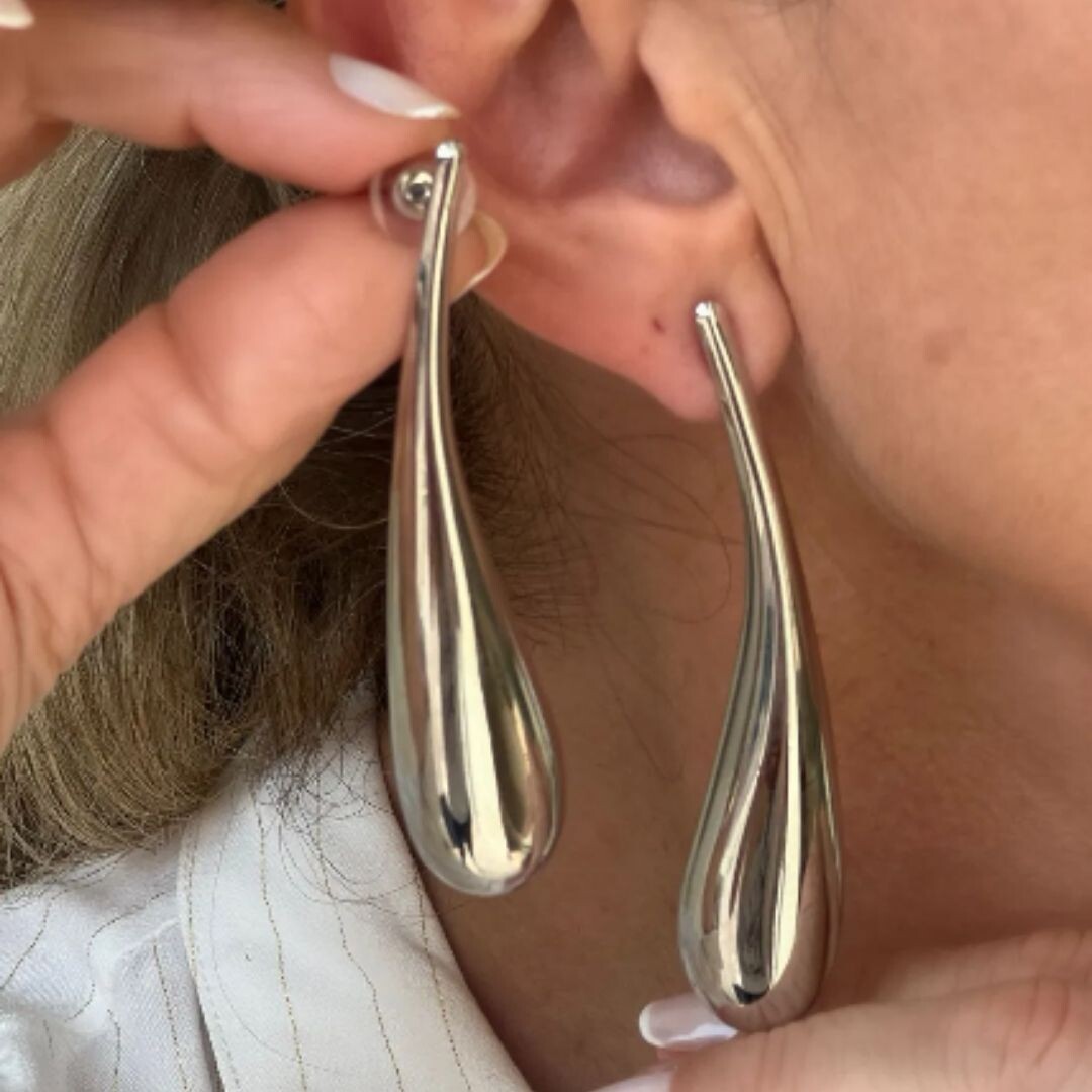 Brincos folheados a prata orgânico gota alongado.