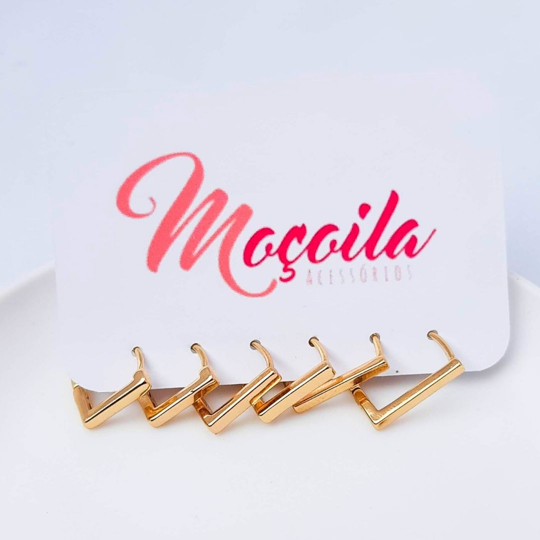 Trio de Brincos Argolas Retangular lisas